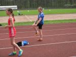 Wieder mit dabei unsere jüngsten Wettkämpferinnen in der Altersklasse w7 Nina Ritter und Fabienne Sämisch. Hoch motiviert begannen beide mit dem Schlagballweitwurf. Es lief dann auch ausgezeichnet, denn sie verbesserten ihre persönlichen Bestweiten enorm. Nina beherrschte die Konkurrenz klar und wurde mit 16,11 Metern Siegerin. Bei Fabienne landete der Ball unglaubliche 5 Meter weiter als sonst bei 14,38 Metern. Dafür wurde sie mit Platz drei belohnt. Im 50m Lauf verbesserte Nina erneut ihre Rekordzeit und kam mit 9,66 Sekunden auf den 3. Podestplatz. In dieser Disziplin konnte Fabienne in der laufenden Saison hingegen noch nicht an ihre alte Leistung anknüpfen und es sprang mit 9,99 Sekunden im Vorlauf und 10,11s im Endlauf Rang sieben heraus. Einen Platz im Mittelfeld beim Weitsprung gab es für Nina (9.) mit 2,43 Meter und für Fabienne (13.) mit 2,28 Meter.