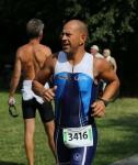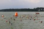 Nun waren auch die Deutschen Polizeimeisterschaften mit 110 Beamten aus 15 Bundesländern auf den Strecken. Die besten von ihnen werden zu den Europameisterschaften fahren. Für die nächsten Triathleten der Gaensefurther Sportbewegung, die sich auf die Olympische Distanz vorbereiteten, boten sie einen kleinen Vorgeschmack auf das, was da kommen sollte. Als die sieben Sportler noch gut gelaunt vom ablegenden Schiff winkten, wussten sie noch nicht, auf welches Abenteuer sie sich da einließen. Für die Zuschauer nur noch als kleiner Punkt sichtbar, entließ „Queen Arendsee“ ihre Passagiere fast am anderen Ende des Sees. „Wenn es aussieht wie beim Fische füttern, kann man davon ausgehen, dass der Start erfolgt ist.“ versicherte Jürgen Salffner, Präsident des Triathlonverbandes Sachsen-Anhalt, den halsrekelnden Zuschauern. In Mitte des Sees konnten dann die Führenden erahnt werden, als sich von der westlichen Seeseite ein mächtiges Unwetter zusammen braute. Die ersten, unter ihnen auch Martin Wille vom cash`n fun Junior Team der Salzlandsparkasse, hatten Glück und entkamen der wilden See. Dann wurde es immer dramatischer. Während der Schaufelraddampfer zur Rettung eines gekenterten Segelbootes gerufen wurde, begannen die begleitenden Rettungsboote die letzten Schwimmer aus dem Wasser zu ziehen. Für jene war der Wettkampf an dieser Stelle beendet. Alle Gaensefurther hatten Glück, erreichten das rettende Ufer und sprinteten hinauf zum höher gelegenen Wechselgarten. Die Radschuhe waren mit Wasser gefüllt, manch bereitgelegter Traubenzucker oder die am Rad gehängte Startnummer hatten dem Starkregen nicht stand gehalten. Nach ihren bescheidenen Schwimmzeiten nahmen Detlef Schäfer und Matthias Lampe die Verfolgung auf. Mit starken Rad- und Laufzeiten, bei inzwischen wieder strahlendem Sonnenschein, fanden beide in den Wettkampf zurück. Schäfer, nach seinem Ironman weiterhin in Bestform, finishte am Ende als schnellster Gaensefurther. Die als Landesmeisterschaft ausgetragene Distanz krönte er mit einem dritten Platz in seiner Altersklasse. Gefolgt von Wille, auf dem letzten Laufkilometer wegen Blasen nur mit einer Sohle beschuht, landete sogar den Landesmeistertitel. Die Salzlandsparkasse hat da eindeutig auf das richtige Pferd gesetzt! Am Ende klatschten alle Triathleten zufrieden und schmunzelnd ab: „So ein Kampf mit den Elementen hatten wir auch noch nicht!“