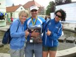 In aller Frühe bereiteten sich am Folgetag die ersten Starter der Gaensefurther Sportbewegung auf die Sprintdistanz vor. Pünktlich um neun Uhr legte der Schaufelraddampfer „Queen Arendsee“ ab. Nach 750 „Seemetern“ führte nur ein Sprung vom Schiff an die gedachte Startlinie zur ersten Disziplin. „Mal sehen ob das noch geht?“ So nahm Annett Lampe ihren ersten Triathlon in diesem Jahr in Angriff und setzte sich bereits beim Schwimmen stark von ihren Verfolgerinnen ab. Als Sprint-Gäste mit dabei, Bode-Runners Jens-Uwe und Sabine Börner, denn die Anmeldung zum Jedermann-Wettkampf war bereits ausgebucht. Wie immer hatten sie ihre Mühe mit dem nassen Element und gingen fast zeitgleich auf die 20 Kilometer Radstrecke. Nach zehn Kilometern ratterten die Rennräder publikumsfreundlich über das Marktplatzpflaster, bevor die zweite Runde anstand. Noch fünf Kilometer laufen, dann war es vollbracht. Und wie es noch ging! Annett Lampe feierte neben ihrem Altersklassensieg sogar den zweiten Platz in der Gesamtwertung der Frauen. Und Sprint-Gast Sabine Börner kann ihren ersten Platz in der Altersklasse Senn2 wohl immer noch nicht richtig glauben.