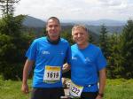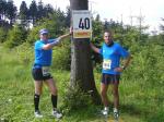 Dem frühen Startschuss um 6.00 Uhr im noch schlafenden Eisenach, gingen viele harte Trainingswochen voraus. Mehrere Marathons, Tempo- und Bergläufe waren absolviert, einzig mit dem Ziel, diesen Ultra-Marathon durchzuhalten. Während es für Jens-Uwe und Sabine Börner der vierte Start zu einem Ultralauf war, bewegten sich Katrin Winkler-Hindricks, Dirk Meier und Jörg Schäper jenseits der 42,195 Kilometer auf unbekanntem Terrain. Leicht fröstelnd, war Kilometer „1“ durch Eisenachs Innenstadt wohl der erste und auch gleich der letzte einfache Abschnitt. Schmunzelnd wurde ein aufgestelltes Ortsausgangsschild registriert, auf dem das Ziel Schmiedefeld mit 72 Kilometern ausgewiesen war. Von nun an ging es bis Kilometer 25,5 stetig bergauf, denn der Große Inselsberg mit 916 Höhenmetern wollte als erstes Etappenziel bezwungen werden. Alle fünf Bode-Runners waren noch dicht beisammen und hatten sich nach drei Stunden Aufstiegsarbeit noch wichtige Körner aufgespart. Bei kühlen fünf Grad Celsius verhinderte dichter Nebel den so hart erkämpften Panoramablick. Zur nächsten großen Verpflegungsstelle "Grenzwiese" ging es rasant bergab auf 746 Höhenmeter. „Das müssen wir nachher alles wieder hoch!“ resümierte Börner und schob sich zur Stärkung lieber noch ein Schmalzbrot in den Mund. Die Frauen beließen es bei warmen Tee und einem schmerzverzerrten Biss in gesalzene Zitronenviertel. Und weiter ging die Reise, jeder in seinem eigenen Tempo. Nicht alle Läufer freuten sich über die inzwischen wärmende Sonne, welche jedoch eine herrliche Sicht vom Höhenweg in das Umland ermöglichte. An der Verpflegungsstation „Ebertswiese“ war die Hälfte der Strecke geschafft. Einen Becher Haferschleim und ein letztes Foto mit Frau Sabine, denn von da an bekam er seine Gattin nicht mehr zu sehen. Beide Frauen spulten Kilometer für Kilometer ab, während in der Männerriege wichtige Fototermine oder Magen- und Muskelprobleme den Vorrang hatten. Ab Kilometer 60 nahm die Strecke einen holprigen Verlauf mit kleinen Hügeln, die inzwischen schon mächtig weh taten. Aber mit "Plänckners Aussicht" auf 973 Metern war der höchste Punkt des Rennsteigs erreicht und als kleine Bergprämie präsentierte man den Läufern die letzten Schneereste. Woher die wohl importiert waren?