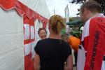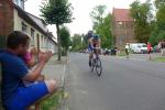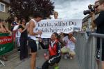 Erst um 13.00 Uhr wurde es dann auch für die 133 Starter über die Jedermann-Distanz ernst. Für den Newcomer Thomas Mohr aus Löderburg, sollte der Triathlon in Arendsee ein unvergessenes Erlebnis werden. Hier war Sabine Börner in ihrem Element, denn nichts liegt ihr mehr, als Debütanten vom Sport zu begeistern. Herrlich unwissend, nahm Mohr dankend jeden Hinweis an, zumal Zeitvorgaben keine Rolle spielten und lediglich das Überqueren der Ziellinie als Maßstab galt. Ein letztes Mal brachte sich die „Queen Arendsee“ in Position und als Mohr seine Brille nach dem Sprung ins Wasser wieder auf der Nase platziert hatte, ging es auch schon los. Die Wellen hielten sich zurück und auch die Brille hielt bis zum anvisierten Ufer. Jens-Uwe Börner wechselte nach dem Schwimmen 15 Sekunden eher auf das Rad als Sabine – ein Schock, dass gab es im Triathlonkampf der Eheleute noch nie! Auf der 20 Kilometer langen Radstrecke begegnete man dem Debütanten Mohr dann zwei Mal. Das schwere Mountainbike erinnerte Börner an seine ersten Triathlon-Starts und die mitgenommene Capri-Sonne ließ Sabine immer noch leicht schmunzeln. Beruhigend, dass sich Mohr für die anstehende Fünf-Kilometer-Laufeinheit noch ein paar Sahnebonbons als Energiereserve bereit gelegt hatte. Beide Börners hatten es fast geschafft, da wechselte auch Mohr auf die Laufstrecke. Während die Wartenden im Zielbereich den rührenden Heiratsantrag eines Triathleten-Pärchens verfolgen konnten, war für Mohr Durchhalten angesagt. Und wie er durchhielt! Gepuscht durch die Sprecheransage und dem Applaus der vielen Zuschauer, legte Mohr auf der langen Zielgeraden einen sehenswerten Schlussspurt hin. Da wurden Reserven mobilisiert, die zweifellos ausbaufähig sind! Ein überglücklicher Thomas Mohr feierte seinen ersten Triathlon und die Sportler der Gaensefurther Sportbewegung feierten gerührt mit. Trotz Aussicht auf einen heftigen Muskelkater vereinbarten die Finisher eine Neuauflage im nächsten Jahr.