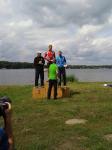 Am schönen Wannsee im Grunewald veranstaltetet ein Berliner Triathlonverein einen Triathlon über die Distanzen 1 km schwimmen - 24 km Radfahrern - 6 km laufen. Gemeinsam mit 50 weiteren Triathleten standen die beide pünktlich um 10:00 Uhr am Start zum 2. Crosstriathlon Berlin. Bei angenehmen Wassertemperaturen war das Tragen des Neoprenanzuges verboten. Es wurden zwei Runden zu je 500 m im Wannsee geschwommen. Blauwitz und Rosenmeier absolvierten das Schwimmen gemeinsam und hatten auf die Spitze ca. 3 min verloren, befanden sich aber immer noch im ersten Drittel des Feldes. Der Wechsel klappte bei beiden ohne Probleme und nun ging es auf 6 anspruchsvolle Radrunden durch den Grunewald. Zum Anfang jeder Runde ging es ca. 1 km auf sandigem Untergrund Bergauf und gespickt mit einer Tragepassage stellte sich der Radsplit als sehr anspruchsvoll heraus. Die beiden Gaensefurther kamen gut mit den Bedingungen zurecht und fuhren im Feld immer weiter nach vorne. Durch die Überrundungen anderer Teilnehmer hatte man den Überblick verloren und so sollte sich erst im Wechselgarten herausstellen an welcher Position man lag. Blauwitz kam als erster der beiden in die Wechselzone. Er zählte drei Räder und lag somit an Position vier. Die abschließenden 6 km Crosslauf gingen über 4 Runden. Schon beim Rauslaufen aus dem Wechselgarten sah Blauwitz den Drittplatzierten und machte sich auf die Verfolgung. Nun zahlte sich das harte Training der letzten Wochen aus. Schnell schloss er auf den Dritten auf und durch eine weitere Tempoverschärfung konnte er sich schnell lösen. Trotz bester Laufzeit an diesem Tag reichte es dann nicht mehr, die beiden vor ihm liegenden noch zu stellen. Auch bei Rosenmeier lief es auf dem Rad sehr gut und er wechselte als 13. auf die Laufstrecke. Hier konnte er von Anfang an gut Tempo machen und seinen 13. Platz im Gesamtklassement verteidigen. Am Ende wurde er mit dem Sieg in der AK 50 belohnt.