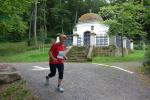 Spätestens am Treppenaufstieg über 63 Höhenmeter war der Genuss dann vorbei. Doch der Mönch belohnte die Anstrengungen mit reichlich kühlem Nass und anspornenden Worten, so dass nach kurzem Luftholen die Beine auch wieder laufen wollten. Bald war der höchste Streckenpunkt erreicht und es ging auf weichem Waldboden und auf reichlich Kienäpfeln wieder hinab. Jens-Uwe Börner, der verletzungsbedingt wandernd auf der Sechs-Kilometer-Distanz unterwegs war, freute sich, dass jeder Läufer der Langdistanz auf dem Weg zum Ziel an ihm vorbei musste. Die Actionfotos waren schnell im Kasten und einen aufmunternden Spruch gab es natürlich auch mit auf den Weg. Mit dem Schwung aus den Bergen ging es rasant in Richtung Stadion. Die Sprecherin war bereits zu hören und die letzten Meter auf der Tartanbahn waren viel zu schnell vorbei. Halberstadt, das war wieder wunderschön - ja schön war’s…