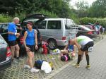 Fünf weitere Gaensefurther gingen am schönen Meisdorfer Schloss an den Start. Der Veranstalter registrierte mit 102 Teilnehmern über diese Distanz einen neuen Teilnehmerrekord. Alle samt sollten dann auf den ersten Kilometern gleich mal ordentlich schwitzen, denn es war nicht nur drückend feucht, es ging auch stetig bergauf. Keine Schwäche zeigen, schließlich gingen in Stiege bereits um sieben Uhr die Ultraläufer über 69 Kilometer an den Start und ab Alexisbad kämpften sich Sportler über die Marathondistanz bis ins Ziel nach Quedlinburg. Im Schatten der Wälder erreichte man Ballenstedt. Vorbei am Schloss blieb der idyllisch angelegte Schlossgarten leider links liegen. Dafür dann aber gute Sicht zur Roseburg und dem Harzer Wahrzeichen, dem weit entfernten Brocken. Bergauf, bergab erreichten die Läufer den Osterteich. Neidisch schweifte der Blick zu den Badenden. Ein Wegweiser verriet den nächsten Anstieg: Osterhöhe. Spätestens oben angekommen, wünschten sich die Flachlandläufer ihre lässigen Trainingsrunden in der Staßfurter Horst zurück. Der Abstieg nach Bad Suderode versprach Erholung. Noch einmal am Verpflegungspunkt gestärkt, ging es nun vorbei an der Bückemühle in Richtung Quedlinburg. Die Sonne brannte erbarmungslos, kein schattenspendender Baum, jede Anhöhe wurde nun zur Tortur. Auf der endlos erscheinenden Straße nach Quedlinburg flimmerte am Horizont eine Tankstelle in der Mittagssonne. Mühsam kam der Tross voran und obwohl die Straße vollkommen eben war, sah man immer mehr Sportler vom Lauf in den Fußmarsch wechseln. Nur gut, vor der Tankstelle kommt noch mal ein Getränkestand! Waren dann aber doch Kartoffeln, das Kilo für 2,00 € – so muss es einem bei einer Fatamorgana ergehen. Das Ortsschild war passiert, der Stadionsprecher war schon zu hören. Nur beim letzten Schlössermarathon in Potsdam erlebten die Bode-Runners wohl eine ähnlich quälende Sportplatzrunde. Trinken, Schatten, wieder trinken, Schatten. Respektvoll verfolgte man das Einlaufen der ersten Marathonläufer. Neben Schölers freute sich auch Sylvia Köhn über ihren ersten Platz in der Altersklasse der Frauen. Gut über die Anhöhen gekommen, war sie sichtlich stolz, diese lange Distanz erstmals ins Ziel gebracht zu haben. Die kommende Trainingswoche widmen die Bode-Runners ganz der Regeneration. Schwimmen und Radfahren im gemütlichen Tempo stehen auf dem Plan. Ob sie den Plan wohl einhalten werden?