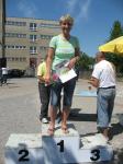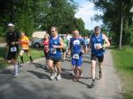 Als anspruchsvoll und für „Fortgeschrittene“ deklariert, sollte die Strecke ihrer Beschreibung durchaus gerecht werden. Bereits nach dem ersten Kilometer stieg die Asphaltstraße merklich an. Doch gerade als das Atmen zu anstrengend werden sollte, sorgte ein schattiger Waldweg wieder für Entspannung. Das Spiel zwischen Licht und Schatten erforderte die ganze Aufmerksamkeit der Läufer. Hatten die Veranstalter den quer liegenden Baum als Extra-Bonbon auf dem Weg drapiert? Wie bei der „stillen Post“ wurde vom Vordermann lauthals an den Verfolger weitergegeben: „Baum!“ Gehüpft, gegrätscht oder draufgetreten, die Barriere sollte für die Läufer kein Hindernis sein. Aus dem Wäldchen führte die Strecke hinaus auf die Felder. Bis zur Streckenteilung brannte die Sonne zusätzlich auf die erhitzten Köpfe. Streckenposten teilten nun die ankommenden Läufer auf: „Die Sieben Kilometer nach links, elf Kilometer nach rechts!“ „Machs gut, arme Bine“, verabschiedete sich Petra Becker von ihrer Vereinskollegin. Zusammen mit Heidi Schwenke vom BSV Eickendorf flitzte Becker nun in Richtung Konradsburg. Die Wahl der kürzeren Streckenlänge sollte sich am Ende gelohnt haben, denn beide Läuferinnen konnten in ihren Altersklassen auf das Siegertreppchen steigen.