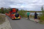 Am Aussichtsturm vom Besucherzentrum Marina war der Startbereich gut positioniert und nachdem die Kinder- und Jugendläufe absolviert waren, starteten auch die Läufe über sechs, 11,5 und 21,1 Kilometer. Der See lag in seiner ganzen Pracht auf der linken Seite und der stark böige Wind schob teilweise kräftig mit an. Während die Sechs-Kilometer-Läufer bald den Rückweg Richtung Ziel antraten, führte der 11,5-Kilometer-Kurs erst noch durch ein kleines Wäldchen. Nach der Wende ging es dann für alle gegen den Wind zurück. War für die Elfer am Hafen Neumark das Ziel erreicht, musste sich der lange Kanten weiter durchkämpfen. Da hatten es die Fahrgäste im Geiseltal-Express doch etwas bequemer. Unbeeindruckt zog die bunte Kleinwegebahn an den Läufern vorbei. Der Ausblick auf den See entschädigte für die Mühen und mit Mücheln und dem Wendepunkt zeigte sich auch der Wind wieder von seiner guten Seite.