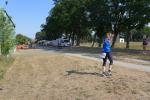 Was den Untergrund betraf, hatte die Strecke alles zu bieten und verdiente zweifelsohne das Prädikat „Cross“. Betonplatten führten über die erste Anhöhe, bevor eine Gabelung die Kurzstrecke über drei Kilometer bald von der Sechs-Kilometer-Distanz trennte. Auf weichen Waldwegen musste man lediglich den zahlreichen Kienäpfeln ausweichen. Ganz nach dem Geschmack für Barfußläufer, wechselten sich holprige Stoppelwiesen mit tiefen Sandwegen ab, bevor auch schon wieder eine weitere Anhöhe zu erklimmen war. Ehe es aus dem Wald hinaus auf eine Lichtung ging, versorgte ein Verpflegungsstand mit Getränken. Der Hinweis, die leeren Becher wieder in die bereitgestellten Abfallbehälter zu werfen, brachte manchen Läufer aus dem Tritt, denn oft verfehlte die Arm-Motorik das enge Ziel. Das muss vor den nächsten Wettkämpfen unbedingt geübt und weiter verinnerlicht werden! Die große Lichtung erlaubte eine Ausschau auf das Renngeschehen, machte Abstände sichtbar und offerierte eine weitere Anhöhe, die zu bewältigen war. Aber es ging dann auch mal bergab, bevor ein Streckenposten bei Kilometer 5,3 die letzte Steigung ankündigte. Die geschafft, ging es für alle Sechs-Kilometer-Läufer rasant bergab in das wohlverdiente Ziel.