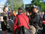 Am Abend vor dem Marathon wurden noch die besten Glückwünsche versendet, die Nachtruhe war unruhig und viel zu kurz. Bereits um 5:30 Uhr sammelte sich die erste Fahrgemeinschaft in Richtung Hannover und nach Parkplatzsuche und Startnummernausgabe breitete sich Dirk Meier als einziger der Mitgereisten auf seinen Marathonstart um 9:00 Uhr vor. Zeitgleich, aber im 500 Kilometer entfernten Prag, fieberte Lutz Klauß seinem ganz persönlichen Kampf entgegen. Beide Männer bereits des Öfteren über 42,195 Kilometer gestartet, wussten dass ihnen die bevorstehende Hitze wertvolle Minuten kosten kann, denn das Wetter ist ein Faktor welcher beim Wettkampf nicht zu beeinflussen ist. Entgegen dem Trainingszustand, den beide Sportler nicht dem Zufall überlassen hatten und optimal vorbereitet an den Start gingen. Die Tagesform passte und laut schallende Musikhits und die begeisterte Menschenmasse am Start ließen den Adrenalinspiegel unaufhörlich steigen. „Zehn, neun, acht“ zählten die Teilnehmer ohrenbetäubend. „Drei, zwei, eins – Start!“ Minutenlang schob sich der Tross über die Startlinie, ein Chip am Laufschuh befestigt, registrierte die genaue Startzeit. Neben tausenden Volksläufern kamen auch namhafte Top-Athleten wie Peter Kurui (am Ende zweiter Platz) oder Amos Matui (3. Pl.) an die Leine. Am Ende sollte Lusapho April aus Südafrika in 02:09:25 Stunden siegen, nur 10 Sekunden vor den starken Kenianern. Laufzeiten, von denen europäische Athleten meist nur träumen.