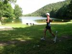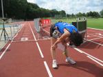 Fünf weitere Gaensefurther gingen am schönen Meisdorfer Schloss an den Start. Der Veranstalter registrierte mit 102 Teilnehmern über diese Distanz einen neuen Teilnehmerrekord. Alle samt sollten dann auf den ersten Kilometern gleich mal ordentlich schwitzen, denn es war nicht nur drückend feucht, es ging auch stetig bergauf. Keine Schwäche zeigen, schließlich gingen in Stiege bereits um sieben Uhr die Ultraläufer über 69 Kilometer an den Start und ab Alexisbad kämpften sich Sportler über die Marathondistanz bis ins Ziel nach Quedlinburg. Im Schatten der Wälder erreichte man Ballenstedt. Vorbei am Schloss blieb der idyllisch angelegte Schlossgarten leider links liegen. Dafür dann aber gute Sicht zur Roseburg und dem Harzer Wahrzeichen, dem weit entfernten Brocken. Bergauf, bergab erreichten die Läufer den Osterteich. Neidisch schweifte der Blick zu den Badenden. Ein Wegweiser verriet den nächsten Anstieg: Osterhöhe. Spätestens oben angekommen, wünschten sich die Flachlandläufer ihre lässigen Trainingsrunden in der Staßfurter Horst zurück. Der Abstieg nach Bad Suderode versprach Erholung. Noch einmal am Verpflegungspunkt gestärkt, ging es nun vorbei an der Bückemühle in Richtung Quedlinburg. Die Sonne brannte erbarmungslos, kein schattenspendender Baum, jede Anhöhe wurde nun zur Tortur. Auf der endlos erscheinenden Straße nach Quedlinburg flimmerte am Horizont eine Tankstelle in der Mittagssonne. Mühsam kam der Tross voran und obwohl die Straße vollkommen eben war, sah man immer mehr Sportler vom Lauf in den Fußmarsch wechseln. Nur gut, vor der Tankstelle kommt noch mal ein Getränkestand! Waren dann aber doch Kartoffeln, das Kilo für 2,00 € – so muss es einem bei einer Fatamorgana ergehen. Das Ortsschild war passiert, der Stadionsprecher war schon zu hören. Nur beim letzten Schlössermarathon in Potsdam erlebten die Bode-Runners wohl eine ähnlich quälende Sportplatzrunde. Trinken, Schatten, wieder trinken, Schatten. Respektvoll verfolgte man das Einlaufen der ersten Marathonläufer. Neben Schölers freute sich auch Sylvia Köhn über ihren ersten Platz in der Altersklasse der Frauen. Gut über die Anhöhen gekommen, war sie sichtlich stolz, diese lange Distanz erstmals ins Ziel gebracht zu haben. Die kommende Trainingswoche widmen die Bode-Runners ganz der Regeneration. Schwimmen und Radfahren im gemütlichen Tempo stehen auf dem Plan. Ob sie den Plan wohl einhalten werden?