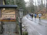 Pünktlich um zehn Uhr starteten 80 Teilnehmer über die sechs, zehn oder 20 Kilometer lange Distanz. Wie sich scheinbar das Wetter nicht zwischen Nieselregen und Sonnenschein entscheiden konnte, schwankten auch die vier Bode-Runners bis zum letzen Wegabzweig noch über die zu wählende Streckenlänge. Im flachen Selketal zurück und den Punsch bereits nach zehn Kilometern genießen oder den Berg hinauf und erst nach 20 Kilometern über die Ziellinie laufen? Ein kurzer Stopp an der Selkemühle und einander tief in die Augen geschaut machte klar: Wir laufen den langen Kanten!