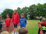 Ein besonderer Höhepunkt in Halberstadt und bei den Kindern sehr beliebt sind die Rolandstaffeln, bei denen 4x50m zu absolvieren sind. Sie setzten sich aus jeweils einem Teilnehmer der Altersklasse 8 bis 11 zusammen. Obwohl mit Fabienne und Nina (w7) nur zwei jüngere Athletinnen zur Verfügung standen,  die mit Lara (w10) und Alina (w11) ein Team bildeten, war die Begeisterung groß. Die begehrten Urkunden mit Gruppenfoto wurden dann auch für Platz zwei strahlend in Empfang genommen.