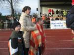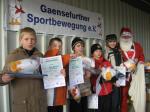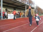 Bereits um 9. 30 Uhr gab er den Startschuss für die Vorschulkinder, die allein 200 Meter am schnellsten absolvieren mussten. Danach wurden die Sechs- bis Achtjährigen, Neun- bis Zehnjährigen sowie die Teilnehmer über elf Jahre mit einem Partner ins Rennen geschickt. Jedes Paar, ausgestattet mit einer identischen Startnummer, lief abwechselnd innerhalb eines bestimmten Zeitfensters so viele Runden wie es schaffte. Das Moderatoren-Duo Florian Börner und Annegret Wille von der Gaensefurther Sportbewegung sorgte für gute Stimmung von den Rängen. Beide führten die Siegerehrungen durch. Auch der Nikolaus stattete den beiden einen Besuch ab. Etwas stressiger ging es bei Stefan Rösler, der für die Computerauswertung zuständig war, zu. Im Startbereich war das Zelt platziert, in dem es den Damen nicht nur durch den Heizlüfter warm wurde. Ihnen wurde die Startnummer zugerufen und daraufhin gaben sie die Rundenzahlen in den PC ein. Zur Höchstform liefen auch Thomas Mota und Christiane Koch von der TSG Gutsmuths Quedlinburg auf, die nach einer Stunde, die größte Distanz zurückgelegt hatten. Sie liefen 16 218 Meter.