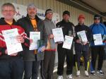 Als in einer der Anfangsrunden ein Läufer aus Hettstedt verletzt aufgeben musste, waren Vereinskameraden und Organisatoren sehr besorgt. Sofort verarzteten Ersthelfer Florian Börner und Mutter Sabine den umgeknickten Fuß mit kalter Kompresse, Bandage und Salbe. Da die genaue Diagnose nur ein Mediziner stellen konnte, hängte Christoph Lampe kurzerhand sein Weihnachtsmannkostüm an den Nagel und brachte den Pechvogel ins Krankenhaus. Sein Partner lief unterdessen fleißig Runde um Runde, übernahm den Part seines Teamkollegen mit. Nach Ende der Laufzeit dann die Entwarnung. Der junge Mann erschien mit großer Bandage im Stadion, erleichtert über die ärztliche Feststellung, dass nichts gebrochen oder verstaucht ist. Und dann das Koriose: Er kam genau rechtzeitig zur Siegerehrung, bei der er gemeinsam mit seinem Partner freudestrahlend die Urkunde für den 2. Platz in Empfang nehmen konnte.