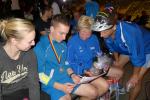 Mit der Einfahrt in den thüringischen Brügman-Schacht, tauchten die Bode-Runners der Gaensefurther Sportbewegung hinab in das Schichtenprofil des „Staßfurtsteinsalzes“, in den Bereich von 648 bis 730 Höhenmeter unter der Erdoberfläche. In Zusammenarbeit mit dem Erlebnisbergwerk, stellte der SV Glückauf Sondershausen mit seiner 17. Auflage des Kristall-Laufes wieder ein einzigartiges Lauferlebnis auf die Beine. Begrüßt mit dem traditionellen Steigerlied der Bergmannskapelle, füllte sich nach und nach der Startbereich mit Läufern und Zuschauern. Das Teilnehmerfeld war aus sicherheitstechnischen Gründen auf 500 Starter begrenzt und auch der Rundkurs wurde entgegen der Vorjahre auf 3,5 Kilometer gekürzt. Dreimal gelaufen, ergab das am Ende auch die ausgeschriebenen 10,5 Kilometer. Das Unter-Tage-Flair war also in vollen Zügen zu genießen und die Zuschauer hatten einmal mehr den Überblick über die hart umkämpfte Platzverteilung. Wohl dem, der nur in leichter Laufbekleidung das Rennen angegangen war, denn Temperaturen zwischen 28 bis 32 Grad Celsius, lange kräftezehrende Steigungen und eine Luftfeuchtigkeit um 20 Prozent, ließen den Kreislauf auf Hochtouren arbeiten. Das Tragen eines Schutzhelmes war Pflicht und auch eine Helmbeleuchtung von Vorteil, galt es doch den losen, teilweise aber auch glatt polierten Salzuntergrund verletzungsfrei zu überstehen. Eine riesige Frischluftanlage sorgte für einen kurzzeitigen Temperatursturz, bevor es am nächsten Anstieg unter dem Helm wieder mächtig heiß wurde. Für den letzten Wettkampf der Saison, hatten sich die Bode-Runners keine großen Ziele mehr gesteckt. Eine Woche nach dem Marathon ließen sie es ruhig austrudeln. Ein Kraftakt waren die zehn Kilometer trotzdem, denn Klima, Höhenprofil, Salzstaub, Untergrund und die spärlich beleuchteten Passagen forderten alle Sinne der Teilnehmer. Jan Ungrad, ehemaliger Bode-Runner und begeisterter Langstreckenläufer, trotzte allen Elementen und arbeitete sich kontinuierlich nach vorn. Als zwölfter in der Gesamtwertung, lief er im Klassement der 20 bis 29 jährigen Männer auf den ersten Platz. Auch Renate Liedtke kämpfte um Platz zwei in ihrer Altersklasse W60 und rettete mit nur 11 Sekunden ihren Vorsprung über die Ziellinie. Die Siegerehrung im beeindruckenden Festsaal bildete am Ende den krönenden Abschluss für alle Altersklassengewinner. Als Erinnerungsstück an ein hartes Stück Lauf-Arbeit, gab es für jeden Finisher einen Salzkristallpokal. Wahllos vom Stein gehauen, glich keiner dem anderen, war jeder für sich einzigartig. Wieder zurück an der Erdoberfläche, erwartete die Bode-Runners nach dem Verlassen des Förderkorbes strahlender Sonnenschein. Bald funktionierten Augen und Ohren wieder normal und ein unvergessenes Unter-Tage-Erlebnis war Geschichte.