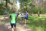 Nun blieb nicht mehr viel Zeit bis zum Start über die Wertungstrecken der sechs und zwölf Kilometer. Nochmal ordentlich mit Wasser benetzt, wollten die Läufer nur noch schnell in den nahen Wald. Doch damit sich der Pulk an Läufern besser auseinander zieht, hatte sich die LG Roland ausgedacht, nach der halben Runde eine weitere im Stadion laufen zu lassen. So eine Stadionrunde ist bekanntlich 400 Meter lang! Bevor sich die Läufer also in den schattigen Wald retten konnten, hatten sie bereits einen Kilometer hinter sich. Auf weichen Waldwegen ging es dann zunächst im Gänsemarsch weiter, bis breitere Wege auch das nebeneinander laufen möglich machten. Noch vor dem Start hatten sich einige Bode-Runners zu Laufpärchen verabredet. Spätestens nachdem der Startschuss gefallen war, waren auch die meisten Absprachen Geschichte, denn beim Wettkampf läuft dann doch meist jeder für sich allein. Nur in der hinteren, ruhigeren Tempogruppe konnten die Kämpfe im Spitzenfeld verfolgt werden, denn nach einer Kehre kamen ihnen die ersten Läufer schon wieder entgegen. „Zweite Frau gesamt!“, schrie Sabine Börner der Vereinskameradin Kisten Geist zu. „Bleib dran Kirsten!“ Zufrieden wurde der Abstand zu Position drei registriert und alle weiteren laufenden Bode-Runners der Reihe nach abgeklatscht. So auch die Startnummer „76“, Sandra Homann, die sich ähnlich wie Emily sehr über ihre Zahlenkonstellation gefreut hatte: „Sehr guter Jahrgang, da kann ja nichts mehr schief gehen!“, schmunzelte die Starterin in sich hinein und ließ gleich mal eine Großaufnahme von dem guten Jahrgang machen. Mit Platz zwei in der Altersklasse W45 hatte die Glückszahl dann wohl auch alle Hoffnungen erfüllt.