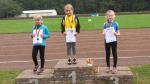 Einen ganzen Medaillensatz konnte Celine Ladehoff (w12) mit nach Hause nehmen. Sie trat im 800m Lauf (1.), Hochsprung (2.) und Kugelstoß (3./PB) an.