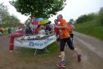 Noch mehr Abenteuer auf der Strecke hatten alle Teilnehmer über den langen Kanten. Der „König-Heinrich-Lauf“ wartete mit 14,3 Kilometern auf und führte nicht nur über weite, satte Wiesenwege. Mit zunehmender Nässe wurden gerade die derben Wurzel- und Steinpfade zur Herausforderung und mancher Sprung in das nächste Matschloch ließ sich mitunter nicht vermeiden. Doch der Regen war inzwischen so stark, dass nach dem letzten Kilometer hinunter nach Quedlinburg, jeder wieder fast sauber war. Neben der Finisher-Medaille erhielten alle Damen eine Rose zum Muttertag und Sylvia Köhn, Jana Berger und Sabine Börner krönten ihren Lauf außerdem mit einem Podestplatz in ihren Altersklassen. Hatten die Herren keinen Einfluss auf die Platzverteilung, stellte Jens-Uwe Börner jedoch beruhigend fest: „Die Berge waren ja im Vergleich zur Harzquerung lächerlich. Alle unverletzt im Ziel, gutes Tempo, ordentlich hoch und runter, Rennsteig wir kommen!“