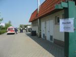 Zehn Uhr, der große Parkplatz vor der Shoppingmeile ist gut gefüllt und auf dem bunten Wochenmarkt bieten die Händler ihre Waren feil. Bratwürstchenduft und Fischgeruch, Gartenreich und Trödelmarkt, Käse Maik ist auch da. Dazwischen immer wieder Läufer in kurzen Hosen, die kreuz und quer ihre Einlaufrunden durch die Passanten suchen. Eine Sprecherstimme verkündet: „Noch 15 Minuten bis zum Start!“ Letzte Möglichkeit, um noch einmal das stille Örtchen im Einkaufstempel aufzusuchen. Praktisch, aber auch für die Läufer eine ungewohnte Atmosphäre. Nun sammeln sich alle Teilnehmer über fünf, zehn oder 15 Kilometer am Rand des Einkaufszentrums. Die fast 150 Sportler starteten gemeinsam und zunächst ging es moderat durch die nahgelegende Eigenheimsiedlung. Der nächste Kilometer wurde sehr schnell, denn es folgte ein rasanter Abstieg durch ein Wäldchen. Spätestens jetzt wussten alle, warum das Einkaufszentrum „Schöne Aussicht“ heißt. Nachdem beide Beine wieder richtig sortiert geradeaus laufen konnten, schlängelte man sich auf der B 87 hinein in den Ort. Wiederholungstäter kannten die hammerharte Strecke und sammelten Kraft für den bevorstehenden Anstieg – natürlich zur schönen Aussicht. Tief atmend, leicht nach vorn gebeugt und in kleinen Tippelschritten nahmen die Sportler den Berg nach eigenen Ermessen. Manch einer wechselte lieber in lange, schwungvolle Schritte, wieder andere brauchten auf halber Höhe erstmal eine Pause. Die Bode-Runners schlugen sich tapfer und so war für die drei Jungendlichen nach dem Berg das Rennen bereits zu Ende. Felix Göres vom cash´n fun Junior Team der Salzlandsparkasse konnte in seiner Altersklasse den zweiten Platz belegen. Und auch Maximilian Gäde und Mark Klauß wurden mit einem Podestplatz belohnt.