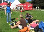Eine ganz andere Traumzeit hatte Lutz Klauß verinnerlicht. Ein Marathon unter vier Stunden sollte es werden. Über Kopfsteinpflaster ging es durch die schöne Prager Altstadt, aber selbst das hatte er trainiert. Kam in der Vergangenheit ab Kilometer 32 immer „der Mann mit dem Hammer“, war Tschechien wohl weit genug entfernt. Es kam bald Kilometer 35 und weiter, der Mann kam einfach nicht. Nach traumhaften 3:55:48 Stunden lief Klauß über die Ziellinie. Anruf in Deutschland: „Nie wieder Marathon - ich hab´s geschafft!“ Bei Meier lief bis Kilometer 35 alles nach Plan. Dann ein Schlenker und ein schleichender Schmerz im Rücken, welcher immer heftiger wurde. Mit ruhigem 130er Puls humpelt Meier in Hannover über die Ziellinie. Am Dienstag lief er wieder… Katrin Winkler-Hindricks, Petra Becker und Jens-Uwe und Sabine Börner starteten unter der Devise: „Halb reicht auch mal!“ Aufgeregt trennte man sich vor dem Start der 21 Kilometer, um sich nicht gegenseitig verrückt zu machen. Zahlreiche Samba-Bands begleiteten die Damen bei ihrer Sightseeing-Tour durch die City. Fast zeitgleiche Ergebnisse wurden am Ende verbucht. „Da hätten wir auch zusammen laufen können!“ Denn ganz allein lief auch Sylvia Köhn. Das Ziel, die zehn Kilometer unter einer Stunde zu absolvieren hat sie trotz Mittagshitze und böigem Wind souverän gemeistert. Das ist noch weiter ausbaufähig! Einem neuen Weltrekord durften die Bode-Runners der Gaensefurther Sportbewegung dann auch noch erleben. 51 Teilnehmer waren als Kettenläufer aneinander gekettet und bewältigten unter diesen Umständen die Marathondistanz.
