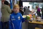An der Spitze des Hauptlaufes über acht Kilometer ging es weiter heiß her. Während sich Stefan Otto vom SV Angern noch an Triathlet Toni Keller die Zähne ausbiss, sortierte sich eine starke Stefanie Nowak auf Gesamtplatz drei der Frauen ein. Nowak kann bereits auf eine erfolgreiche Triathlonsaison zurückblicken, die am Sonntag mit dem Riemer-Team-Triathlon am Barleber See zu Ende ging. Für das nächste Jahr ist ein Start beim Ironman geplant: „Man muss sich doch Ziele setzen!“ verriet die Athletin mit einem Augenzwinkern und lief mit den acht Kilometern gerne in den Feierabend. Noch förmlich inspiriert vom Geburtstagsständchen, bewies Schäper in seinem neuen Lebensjahr einen top Trainingszustand. In Vorbereitung auf den 3-Länder-Marathon im Oktober, trainiert Schäper fast täglich: „Ich habe ein paar Bekannte mit dem Lauffieber infiziert!“, entschuldigte er sich fast dafür, dass er neben den Trainingseinheiten, auch dafür noch Zeit, Lust und die nötigen Körner aufbringt. Ein schneller Lauf, den der locker abspulte, war sein ganz eigenes, ganz spezielles Geburtstagsgeschenk. Es dauerte gar nicht lange, da überquerte auch Lenny Dannehl die heiß ersehnte Ziellinie. Mit seinen zwölf Jahren lieferte sich der Neuzugang bei den Bode-Runners ein beherztes Rennen mit seinem Onkel Udo. Die beiden werden in Zukunft sicher noch viele ähnliche Familienausflüge unternehmen. Die obligatorische Sportplatzrunde musste sein, dann waren vor Einbruch der Dunkelheit alle Läufer wohlbehalten wieder im Ziel. Und auch die Genussläufer mussten keineswegs auf den „namensgebenden“ Pflaumenkuchen verzichten. Bis zum Schluss wurde der Kuchenstand immer wieder aufgefüllt, aber bitte mit Sahne! Jeder vorangemeldete Teilnehmer hatte dann die Qual der Wahl bei den originellen Tombola-Preisen. Ganz nebenbei wurde der „Siegerpokal“ gefertigt, denn auch da hatten sich die Veranstalter etwas ganz besonderes einfallen lassen. Siegerin und Sieger standen dem Schnellzeichner Karl-Heinz Klappoth aus Niederndodeleben Modell und durften am Ende ihr ganz spezielles Gemälde mit nach Hause nehmen. Um den Sportplatz wurde es langsam ruhiger und alle Aktiven verschwanden in die Nacht. Viel Zeit zum Ausruhen bleibt nicht, denn mit der 25. Jubiläumsauflage „Lauf über den gläsernen Mönch“ in Halberstadt, geht es nach der Sommerpause wieder auf Punktejagd im Novo-Nordisk-Landescup.