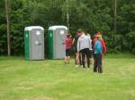 Nach verschlungenen Waldwegen passierten die 16-Kilometer-Läufer die sagenumwobene Mägdetrappe und es ging rasant bergab in Richtung Mägdesprung. Bei Sabine Börner sorgte das lose Felsgestein für einen unfreiwilligen Stopp. Zum Glück waren alle Glieder ordentlich warmgelaufen und der Abstieg konnte fortgesetzt werden. In Mägdesprung angekommen, ging es wieder 120 Höhenmeter hinauf. Geteiltes Leid ist halbes Leid dachte sich das Trio Sylvia Köhn, Lutz Klauß und Jens-Uwe Börner. Gemeinsam spornten sie sich an, machten sich Mut und kamen bald darauf über einen schmalen Klippenweg am sogenannten „Pioniertunnel“ an. Die Durchquerung des 15 Meter langen Felsdurchbruchs war nur in gebückter Haltung möglich, ein Fotomotiv wie für Börner gemacht! Am Verpflegungsstand konnten sich die Läufer noch einmal stärken, denn nun kam der Anstieg zum Birkenhäuschen. Hinab ins Steintälchen ging es wieder hinauf zum Himmelsgarten bevor die Strecke auf den letzten drei Kilometern herrlich sanft auslief. Im Zielbereich herzlich vom Publikum und Moderator empfangen, kümmerte sich ein Sportfreund „Peter“ rührend um alle einlaufenden Damenbeine. Er ließ es sich nicht nehmen, den Transponder für die Zeitmessung höchstpersönlich zu entfernen. Bis zum Zielschluss hatte sich der Regen zurückgehalten, bei der Siegerehrung schüttete es dann aber ordentlich. Aus dem schützenden Zelt, hinauf aufs Treppchen, durften wieder nur die Bode-Runner-Damen. Ina Schöler von der ZLG Atzendorf wurde ziemlich nass, denn nicht nur die Gesamtzweite bei den Damen, sondern auch der Sieg in ihrer Altersklasse verlangte nach ihrem Erscheinen. Isa Höber siegte souverän in der W 45 und Sylvia Köhn und Sabine Börner freuten sich über einen zweiten Platz in den Altersklassen W 30 und W 45.