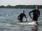 Annett Lampe(w40) und Annegret Wille (w45), die einzigen Damen im Team, schafften es unter die besten zehn Teilnehmerinnen und ließen auch mindestens die Hälfte der männlichen Triathleten hinter sich. In Ihren Altersklassen siegten sie. Beide glänzten mit sehr guten Schwimmzeiten über die 750m, jeweils unter 16 min und Annett überraschte mit einer super Laufzeit von 21:31min über die 5 Kilometer.