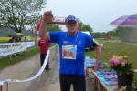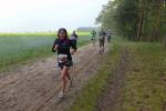 Noch mehr Abenteuer auf der Strecke hatten alle Teilnehmer über den langen Kanten. Der „König-Heinrich-Lauf“ wartete mit 14,3 Kilometern auf und führte nicht nur über weite, satte Wiesenwege. Mit zunehmender Nässe wurden gerade die derben Wurzel- und Steinpfade zur Herausforderung und mancher Sprung in das nächste Matschloch ließ sich mitunter nicht vermeiden. Doch der Regen war inzwischen so stark, dass nach dem letzten Kilometer hinunter nach Quedlinburg, jeder wieder fast sauber war. Neben der Finisher-Medaille erhielten alle Damen eine Rose zum Muttertag und Sylvia Köhn, Jana Berger und Sabine Börner krönten ihren Lauf außerdem mit einem Podestplatz in ihren Altersklassen. Hatten die Herren keinen Einfluss auf die Platzverteilung, stellte Jens-Uwe Börner jedoch beruhigend fest: „Die Berge waren ja im Vergleich zur Harzquerung lächerlich. Alle unverletzt im Ziel, gutes Tempo, ordentlich hoch und runter, Rennsteig wir kommen!“