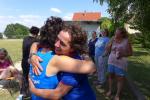 Einen tragischen Verlust muss indes die Kinder-Trainingsgruppe der Gaensefurther Sportbewegung verkraften. Mit den letzten Schultagen endete für die elf Kinder von sieben bis zehn Jahre das Training mit ihrer Silke. Der Umzug in eine andere Stadt ist leider nicht abzuwenden. Dabei hatte sie mit Überbringung dieser traurigen Tatsache wohl am meisten zu kämpfen. Als die Kinder und Eltern die langjährige Übungsleiterin zur letzten Trainingseinheit nun mit einer kleinen Abschiedsfeier überraschten, nahmen die Tränen ihren Lauf. Jedes Kind verabschiedete sich mit einer Rose, natürlich in den Gaensefurther Vereinsfarben blau/weiß. Ein Erinnerungs-T-Shirt für die beste Trainerin der Welt und ein Pokal durften natürlich nicht fehlen. Auch Vertreter der Laufgruppe überbrachten im Namen des Vorstandes ein kleines Dankeschön für die wichtige Arbeit mit den Kids. Silke Vorrath versteht es gut, das Einmaleins der Leichtathletik neigungs-, altersgerecht und spielerisch zu vermitteln. Mit den Sportanlagen rund um die Hecklinger Grundschule hat die temperamentvolle Kindergruppe auch alle Möglichkeiten für ein abwechslungsreiches Training. Doch wie kann es nun weitergehen? Diese Frage wüsste auch Vorrath allzu gerne beantwortet. Im Moment steht ein Übungsleiter-Papa in den Startlöchern, der erstmal alle 14 Tage das Dienstagstraining übernehmen wird. Freiwillige vor, die Gaensefurther Sportbewegung und allen voran die Kinder-Leichtathletikgruppe, sucht dringend nach ein, besser zwei tatkräftigen Unterstützern. Interessenten melden sich sehr gerne direkt bei der Kindergruppe, die immer dienstags ab 15:30 Uhr trainiert oder per E-Mail bei den Bode-Runners unter laufgruppe@gaensefurther-sportbewegung.de, damit ein kräftiges "Sport frei!" weiterhin für Begeisterung bei dem Sportlernachwuchs sorgt...
