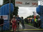 Für den ersten Platz in seiner Altersklasse reichte die Zeit für Florian Börner (m19). Jens-Uwe Börner(m45) folgte nach weiteren sechs Minuten und belegte in seiner Altersklasse Platz 17. Auch bei ihm wie bei der letzten des Teams, Annegret Wille, war das Schwimmen das große Handicap. Jens-Uwe hielt wegen Kälteschocks schon mitten auf der 500m Distanz nach dem Rettungsschwimmer Ausschau, die er aber zum Glück nicht in Anspruch nahm. Annegret hätte einen Helfer benötigt, um aus dem nassen Gefilde zu kommen, denn mit Wadenkrämpfen ging kurz vor dem Strand nur noch ein Paddeln in Rückenlage. Irgendwann ging es dann zum Glück doch. Allerdings waren das Radfahren und das abschließende Laufen nicht mehr mit voller Kraft möglich. Platz vier hinter Sabine war dann doch noch ein Trost fürs Durchhalten.