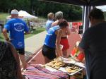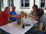 Fünf weitere Gaensefurther gingen am schönen Meisdorfer Schloss an den Start. Der Veranstalter registrierte mit 102 Teilnehmern über diese Distanz einen neuen Teilnehmerrekord. Alle samt sollten dann auf den ersten Kilometern gleich mal ordentlich schwitzen, denn es war nicht nur drückend feucht, es ging auch stetig bergauf. Keine Schwäche zeigen, schließlich gingen in Stiege bereits um sieben Uhr die Ultraläufer über 69 Kilometer an den Start und ab Alexisbad kämpften sich Sportler über die Marathondistanz bis ins Ziel nach Quedlinburg. Im Schatten der Wälder erreichte man Ballenstedt. Vorbei am Schloss blieb der idyllisch angelegte Schlossgarten leider links liegen. Dafür dann aber gute Sicht zur Roseburg und dem Harzer Wahrzeichen, dem weit entfernten Brocken. Bergauf, bergab erreichten die Läufer den Osterteich. Neidisch schweifte der Blick zu den Badenden. Ein Wegweiser verriet den nächsten Anstieg: Osterhöhe. Spätestens oben angekommen, wünschten sich die Flachlandläufer ihre lässigen Trainingsrunden in der Staßfurter Horst zurück. Der Abstieg nach Bad Suderode versprach Erholung. Noch einmal am Verpflegungspunkt gestärkt, ging es nun vorbei an der Bückemühle in Richtung Quedlinburg. Die Sonne brannte erbarmungslos, kein schattenspendender Baum, jede Anhöhe wurde nun zur Tortur. Auf der endlos erscheinenden Straße nach Quedlinburg flimmerte am Horizont eine Tankstelle in der Mittagssonne. Mühsam kam der Tross voran und obwohl die Straße vollkommen eben war, sah man immer mehr Sportler vom Lauf in den Fußmarsch wechseln. Nur gut, vor der Tankstelle kommt noch mal ein Getränkestand! Waren dann aber doch Kartoffeln, das Kilo für 2,00 € – so muss es einem bei einer Fatamorgana ergehen. Das Ortsschild war passiert, der Stadionsprecher war schon zu hören. Nur beim letzten Schlössermarathon in Potsdam erlebten die Bode-Runners wohl eine ähnlich quälende Sportplatzrunde. Trinken, Schatten, wieder trinken, Schatten. Respektvoll verfolgte man das Einlaufen der ersten Marathonläufer. Neben Schölers freute sich auch Sylvia Köhn über ihren ersten Platz in der Altersklasse der Frauen. Gut über die Anhöhen gekommen, war sie sichtlich stolz, diese lange Distanz erstmals ins Ziel gebracht zu haben. Die kommende Trainingswoche widmen die Bode-Runners ganz der Regeneration. Schwimmen und Radfahren im gemütlichen Tempo stehen auf dem Plan. Ob sie den Plan wohl einhalten werden?