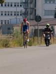 Geschwommen wurde rund um die sogenannte Spülinsel, eine kleine Insel mit Campingplatz, im Hafenbecken von Havelberg gelegen. Die Wasserqualität war trotz des Hochwassers als unbedenklich eingestuft und nicht trüber als auch in den Jahren zuvor. Auf den letzten 500 Metern, bog man dann in den eigentlichen Flusslauf der Havel ein, was ein wenig ''Rückenwind'' bedeutete. Nach guten hundert Metern Laufstrecke zum Wechselbereich, ging es aufs Rad um drei Runden von je 22 km zu absolvieren. Die Strecke ging nördlich von Havelberg über Dahlen, Nitzow um nach 11 km in Quitzöbel zu wenden. Der Wind spielte komischerweise auf der Hin- bzw. Rückstrecke eine Rolle, was die Sache gepaart mit schlechtem Fahrbahnbelag nicht einfacher machte. Das Schöne an Wendepunktstrecken ist aber, das einem seine Mitstreiter wieder entgegen kommen und man so gut einschätzen kann, wo man sich im Feld befindet. Die besten Beine hatte an diesem Tag Thomas Vetter, der die Radstrecke in 01:54:22 Stunden bewältigte, knapp gefolgt von Chris Anders, der trotz Luftproblemen bei den Witterungsbedingungen am Hinterrad von Vetter biß. Für die Meisten war dieser Turn nach rund zwei Stunden gemeistert und es hieß einen schnellen Wechsel hin zu bekommen. Ab in die Laufschuhe.