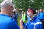 Die LSG Ascania schaffte mit ihrem neuen Start- und Zielbereich an der Herrenbreite eine besondere Atmosphäre zur 40. Jubiläumsauflage und bei der Größe der Parkanlage, war das pandemiebedingte Abstandhalten auch kein Problem. Nur den anhaltenden Regen hätten sich eine Woche zuvor wohl eher die Veranstalter der Genthiner Matschwolke gewünscht. Aber bekanntlich kommen ja nur die Harten in den Garten und so pfiff Paparazzi Börner seine Bodis im feinsten Nieselregen zur Fotoaufstellung vor dem Startbogen zusammen. „Leute, die Matten sind scharf!“, hallte es aus dem Messwagen der Zeiterfassung. Wie ein aufgescheuchter Hühnerhaufen sortierten sich die Lauffreunde entfernt der verlegten Messschleife neu, denn ein Kontakt hätte die Ergebnislisten der bereits gestarteten Walker arg durcheinander bringen können. Schnell noch ein Geburtstagsständchen für den Jürgen, der sich sehr über die vorgezogenen Starts und die damit näher rückende Kaffeerunde freute. Nahe am Ehekrach schrammte ein Bode-Runner-Pärchen vorbei, die es gerade noch schafften ihre Startunterlagen abzuholen: „Du musst auf die Laufstrecke!“, schickte sie den Gatten los, der nun zwölf Kilometer vor sich hatte, um das angestaute Adrenalin abzulaufen. Bei all der Aufregung geriet fast der Start von Debütantin Anke Delius ins Hintertreffen. Wie ein Routinier reihte sie sich aber in die lange Startaufstellung ein und zog ihre sieben Kilometer ruhig und ohne Gehpausen durch. Das kontinuierliche Training mit der Laufgruppe zeigte erste Erfolge und Delius lief nicht ohne Stolz über die Ziellinie. Nach langer Verletzungspause und mit etlichen Gehpausen über diese Distanz, war Sabine Börner wieder mit von der Partie. Einzig allein der dadurch errungene Mannschaftspunkt war das Ziel. Doch das gute Mannschaftsgefühl und die Tatsache, dass es langsam wieder aufwärts geht, waren allemal Lohn für die Quälerei. In Bestform und als schnellste Gaensefurtherin auf der Sieben-Kilometer-Distanz unterwegs, spulte Janine Wuwer ihr Rennen ab. „Das ist mein Wetter!“, freute sich die Sportlerin dann auch noch über ihren ersten Platz in der Altersklasse W40. Als „langer Kanten“ musste beim Jubiläumslauf die 18,5 Kilometer lange Strecke reichen. Führte 2019 der 25-Kilometer-Kurs noch über die Burg Arnstein, ging es diesmal schon kurz vor Welbsleben zurück, oft am Flüsschen Eine entlang, direkt wieder in das Zentrum von Aschersleben. Okay, die Strecke war kürzer aber dennoch sehr anspruchsvoll. So berichteten einige Finisher, dass sie auf Grund der Nässe die Wegmarkierungen nicht erkannten und dadurch einige Kilometer mehr zusammen kamen. Die aufgeweichten Sommerwege sorgten indes für abenteuerliche Rutschpassagen. Umso intensiver waren die Erfolgserlebnisse und die Streckenberichte dann im Ziel.