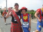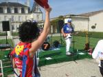 Neun Bode-Runners der Gaensefurther Sportbewegung gehörten zu den glücklichen Teilnehmern am Marathon des Chateaux du Medoc. Zusammen mit Sportlern aus Halberstadt, Aschersleben, Bernburg und Frankfurt bezog man im Feriendorf Lacanau an der südfranzösischen Atlantikküste Quartier. Ein sonnenverwöhntes Paradies unweit der Chateaus, welche sich durch die edelsten Weine dieser Erde ihren Namen machten. Erwartungsvoll begab sich die Gruppe in das Meer der knapp 9.000 Läufer und nach einem fast zwei stündigen Showprogramm, ging es dann wirklich auf die 42,195 Kilometer lange Weinverkostung. Der erste WC-Stopp erfolgte bereits vor dem ersten Kilometerschild, denn der eigene, gut gefüllte Getränkevorrat machte sich nach dem langen Stehen in morgendlicher Kälte bemerkbar. Kein leichtes Unterfangen, hatte man doch die ursprüngliche Laufbekleidung gegen ein Clown-Kostüm eingetauscht. Nachdem alle Hosenträger und Sicherheitsnadeln wieder an der richtigen Stelle waren und man inzwischen von schätzungsweise 4.000 Läufer überholt wurde, verließ die Gruppe unter dem Beifall zahlreicher Schaulustiger Pauillac. Eine Runde um die ersten Chateaus war zu absolvieren, bevor man nach 22 Kilometern den Ort wieder erreichen wollte. Ziel war, diese Strecke ziemlich zügig zu laufen, dann bei Kilometer 22 Renate Liedtke mitzunehmen und den Rest des Marathons gemeinsam zu genießen. Einen ersten erlesenen Tropfen Beychevelle gab es bereits bei Kilometer sieben. À la vôtre! Läufer aus der ganzen Welt prosteten sich genüsslich zu, die Bode-Runners vor jedem Schloss im Fotoshooting. Alle Verpflegungsstände waren üppig gedeckt. Neben frischem Obst reichte man den Läufern Salzgebäck, verschiedene Brot- und Käsesorten, Kuchen und Kekse, Trockenfrüchte, Wasser, Cola und natürlich immer wieder ein Becherchen Rotwein. Nach gut 2,5 Stunden erreichte man wieder Pauillac und Renate übernahm die Tempoarbeit. Mit den Chateaus Mouton und Lafite Rothschild nährte sich die Gruppe einem weiteren Höhepunkt. In der Parkanlage am prunkvollen Schloss, kredenzte man die edlen Tropfen natürlich in Gläsern. Eine logistische Meisterleitung für über 8.000 Läufer! Bereits mächtig dem Alkohol verfallen, ließen es sich einige Läufer nicht nehmen, im Teich der Rothschilds ein ernüchterndes Bad zu nehmen. Außer der zunehmend schwerer werdenden Beine verkrafteten die Staßfurter Läufer die ungewohnte Herausforderung bislang ohne Verluste. Eine Zielzeit von 6:30 Stunden war vom Veranstalter als Zeitlimit vorgegeben, dass müsste doch zu schaffen sein! Inzwischen war Kilometer 36 passiert, die Anstiege zu den höher gelegenen Chateaus lagen hinter den Läufern und es ging hinaus auf die Küstenstraße. Vor einem kleinen Imbisswagen drängte sich die Läuferscharr. Vom dicken Bayonner Schinken schnitt ein waschechter Franzose dünne Scheiben, die fluchs geschnappt, durch die Masse gereicht wurden. Ein leicht salziger Gaumenschmaus für den sich die kleine Pause gelohnt hatte! Nicht weit entfernt roch man bereits das nächste Highlight. Auf großen Tabletts wurden Austern mit Zitronen gereicht. Dazu servierte man den Läufern einen trockenen Weißwein. Für alle Bode-Runners eine Mutprobe die bereits im Vorfeld im Pflichtenheft aufgenommen wurde. Und eine Erfahrung, welche die meisten nicht noch einmal haben müssen. Da zog der Duft von frisch gegrilltem Rindersteak die Läufer schon eher zum nächsten Anlaufpunkt. Wer noch nicht genug hatte, konnte sich dazu auch einen feinen Cognac einschenken lassen. Nach diesen Schlemmermeilen und der brütenden Sonne sehnte man sich nach dem Ende. Nun kam auch noch ein Franzose mit einem riesigen Spiegel auf die Mädels zu. Danke, wir wissen wie es um uns gestellt ist, versuchte man zu übermitteln. Aber höflich lud er an den Straßenrand zur Auffrischung der Schminke ein, schließlich sollte beim Zieleinlauf alles perfekt sein. Nun hatte man also auch noch die Deutschlandfarben auf der Wange und nachdem alle noch ein Stieleis naschten, kamen auch die Kräfte wieder zurück. Ein Blick auf die Stoppuhr: „Das schaffen wir noch unter sechs Stunden!“ Gemeinsam genoss man nach 5:58 Stunden das Überqueren der Ziellinie, über 3.000 Läufer sollten noch folgen. Nicht umsonst spricht man vom „längsten Marathon der Welt“.