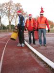 Als in einer der Anfangsrunden ein Läufer aus Hettstedt verletzt aufgeben musste, waren Vereinskameraden und Organisatoren sehr besorgt. Sofort verarzteten Ersthelfer Florian Börner und Mutter Sabine den umgeknickten Fuß mit kalter Kompresse, Bandage und Salbe. Da die genaue Diagnose nur ein Mediziner stellen konnte, hängte Christoph Lampe kurzerhand sein Weihnachtsmannkostüm an den Nagel und brachte den Pechvogel ins Krankenhaus. Sein Partner lief unterdessen fleißig Runde um Runde, übernahm den Part seines Teamkollegen mit. Nach Ende der Laufzeit dann die Entwarnung. Der junge Mann erschien mit großer Bandage im Stadion, erleichtert über die ärztliche Feststellung, dass nichts gebrochen oder verstaucht ist. Und dann das Koriose: Er kam genau rechtzeitig zur Siegerehrung, bei der er gemeinsam mit seinem Partner freudestrahlend die Urkunde für den 2. Platz in Empfang nehmen konnte.