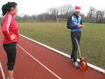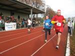 Bereits um 9. 30 Uhr gab er den Startschuss für die Vorschulkinder, die allein 200 Meter am schnellsten absolvieren mussten. Danach wurden die Sechs- bis Achtjährigen, Neun- bis Zehnjährigen sowie die Teilnehmer über elf Jahre mit einem Partner ins Rennen geschickt. Jedes Paar, ausgestattet mit einer identischen Startnummer, lief abwechselnd innerhalb eines bestimmten Zeitfensters so viele Runden wie es schaffte. Das Moderatoren-Duo Florian Börner und Annegret Wille von der Gaensefurther Sportbewegung sorgte für gute Stimmung von den Rängen. Beide führten die Siegerehrungen durch. Auch der Nikolaus stattete den beiden einen Besuch ab. Etwas stressiger ging es bei Stefan Rösler, der für die Computerauswertung zuständig war, zu. Im Startbereich war das Zelt platziert, in dem es den Damen nicht nur durch den Heizlüfter warm wurde. Ihnen wurde die Startnummer zugerufen und daraufhin gaben sie die Rundenzahlen in den PC ein. Zur Höchstform liefen auch Thomas Mota und Christiane Koch von der TSG Gutsmuths Quedlinburg auf, die nach einer Stunde, die größte Distanz zurückgelegt hatten. Sie liefen 16 218 Meter.