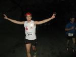 Um 11.00 Uhr waren dann alle 479 Starter bereit für das große Abenteuer. Eine gemessene Luftfeuchtigkeit von 23,5 Prozent, was einem Lauf in der Wüste entspricht, Temperaturen zwischen 28 bis 37 Grad Celsius, extrem glatte Salz-Passagen und die Steigung der sogenannten „Mauer“ mit 24 Prozent, sollte einem harten Bergmann-Arbeitstag entsprechen können. Verhalten gingen die Bode-Runners an die erste Fünf-Kilometer-Runde. In den spärlich beleuchteten Gängen hallte es: „Anja? Ja! Lutz? Ja! Dirk? Ja! Mike? Ja! Dann kam die Mauer: Kleine Schritte, die Arme schwangen kontrolliert mit, gleichmäßig tiefe Atemzüge, der Puls schlug bis unter den Helm, im Lichtkegel rieselte der Salzstaub. Nach gut zwei Kilometern Steigung: „Anja?“ Mehr bekam Sabine nicht raus. Keine Antwort. An der Trinkstelle schluckten die Läufer dankbar das gereichte Wasser. Einen Becher noch über den Kopf, irgendwie schmeckte jetzt alles salzig. Auf dem langgezogenen Plateau kamen die Läufer wieder zu Luft. Die letzten zwei Kilometer der ersten Runde ging es bergab. Nur mit Lampe und gutem Laufschuh war ein rasantes Tempo möglich. Wer im Dunkeln tappte oder ängstlich auf die glänzenden Salzstellen reagierte, schaltete lieber einen Gang runter. Vorbei an der riesigen Frischluftanlage, stieg den Läufern die Würstchenluft aus der unterirdischen Gastronomie in die Nase. Nun war es nicht mehr weit und 150 Zuschauer puschten die tropfenden Läufer in die zweite Runde. Bevor es wieder an die Mauer ging, verlangte der Körper noch einmal Wasser. Während manche gleich in den schnellen Schritt wechselten, hatten andere nur ein Ziel: Nicht stehen bleiben! Langsam aber beständig ging es wieder nach oben. Hitzestau, der Kopf und die Beine drohten zu platzen, Helm und Lampe nervten nur noch, man hatte das Gefühl die Decke fällt einem auf den Kopf. Gänsehaut pur, als die Kuppe endlich erreicht war. Ja!!! Los, nach Hause!