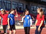In der Altersgruppe der 7-jährigen Schülerinnen waren die blauen T-shirts der Gaensefurther nicht zu übersehen. Michelle Otto, Laura Otto, Nina Ritter, Fabienne Sämisch und Lena Himpenmacher mussten in etwas ungewohnter Situation als Konkurrentinnen antreten. Das meisterten sie perfekt, strengten sich sehr an und waren eifrig bei der Sache. Als souverän in allen Disziplinen erwies sich Michelle Otto. Sie konnte überall Platz 1 mit PB für sich verbuchen. Mit 1107 Punkten im Vierkampf bzw. 850 Punkten im Dreikampf holte sie sich haushoch den Sieg. Ihre Schwester Laura folgte auf Platz zwei, ebenfalls mit PB in allen Disziplinen und 955 Punkten im Vierkampf bzw. 743 Punkten im Dreikampf. Nina lag nach drei Disziplinen mit PB im 50m Lauf und im Weitsprung knapp hinter einer Stendalerin auf Platz drei, jedoch mußte sie diesen nach dem 400 Meter-Lauf, ebenfalls mit PB, abgeben. Besonderen Grund zur Freude gab es für die Mädchen, weil sie alle drei die Drei-Meter-Marke im Weitsprung "knackten". Fabienne holte sich mit 659 Punkten (3-K) bzw. 817 Punkten (4-K) Platz 6 und Lena wurde Neunte.