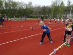 Marek Kadereit (m13) eröffnete mit Kugelstoß das Wettkampfgeschehen für die Gaensefurther. Mit persönlicher Bestleistung (PB) von 11,74 Meter sicherte er sich hinter einem Konkurrenten aus Halle Platz zwei. "Wenn es ihm gelingt, seine Technik weiter zu verbessern, kann es noch entschieden weiter gehen", waren sich die Experten danach einig. Mit einer neuen PB im Hochsprung von 1,45 Meter, die ihm aber nur Platz fünf einbrachte, machte Robin Dietrich (m13) auf sich aufmerksam. Im Weitsprung wurde er Siebter. Der gleichaltrige Moritz Himpenmacher war mit großen Erwartungen in Bernburg angetreten, aber Beschwerden im Bein ließen nach 1,35 Meter im Hochsprung keine Fortsetzung des Wettkampfes an diesem Tage mehr zu.