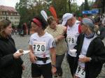 Als „Mutter aller Läufe“ unter Insidern benannt, zog sich am vergangenen Sonntag der Belziger Burgenlauf über 25 Kilometer durch die bunte Herbstlandschaft. Etwas länger als ein Halbmarathon und bergauf, bergab durch den Hohen Fläming, gingen acht Starter der Gaensefurther Sportbewegung diesen Crosslauf als letzte Vorbereitung für den Rügen-Brücken-Marathon an. Die Strecke war gut präpariert, hatte es doch am Vortag ordentlich geregnet. Und noch beim traditionellen Ehrenstart auf Burg Eisenhardt, drohten dunkle Regenwolken. Doch der guten Stimmung in dem großen Starterfeld machte dies keinen Abbruch. Bei angenehmen 12 Grad Celsius und leichtem Nieselregen ging es zusammen mit den acht Kilometerläufern auf die Strecke. Vom historischen Belziger Marktplatz mit seinen ca. 100 Höhenmetern über NN, kämpfte man sich nun allmählich bis auf 190 Meter hoch. Nur mit erhöhter Aufmerksamkeit und gegenseitiger Rücksichtnahme bewältigten die Sportler Stein- und Sandwege, Wurzelwerk oder durchnässte Grasnarben. Mitunter waren die Trampelpfade um die großen Pfützen für die hinteren Läufer nur noch gehend zu überqueren. Erleichterung für Renate Liedtke und Tina Börner, als sich die Acht-Kilometerstrecke vom restlichen Teilnehmerfeld trennte. Bevor es wieder bergauf ging, konnten sie sich auf der leicht abschüssigen Strecke erst einmal erholen. Nach nicht einmal einer Stunde erhielten sie bereits ihre Teilnehmerurkunden vom zuständigen Burgfräulein. Nun hieß es sich die Zeit zu vertreiben, bis die Langsteckler einlaufen.