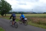 7:30 Uhr: Der Regen sollte erst um die Mittagszeit einsetzen, Petrus hatte aber einen anderen Plan. Schnell füllten sich die unbefestigten Wege mit großen Pfützen und Jens-Uwe hatte seine Mühe das Rad durch den Schlamm zu fahren. An der nächsten Steigung drehten die Räder schließlich durch und die erste Schiebung des Tages nahm ihren Lauf.