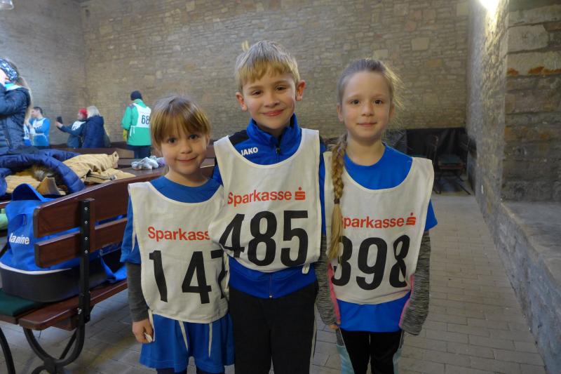 Das ließ er sich nicht nehmen! Der Aderstedter Bürgermeister Mike Franzelius bestand vor dem Start des Neujahrlaufes auf „sein“ Gruppenbild mit allen Teilnehmern. Den Wunsch erfüllten die 79 Starter natürlich gerne und reihten sich vor der Festscheune diszipliniert auf. Ungeachtet aller Vorbereitungen die so eine Laufveranstaltung mit sich bringt, hatte Franzelius bereits die fünfminütige Erwärmung gestemmt und die Ungeduldigen somit auf Betriebstemperatur gebracht. Bei angenehmen Lauftemperaturen standen dann alle Starter über eins und sechs Kilometer zappelig an der Startlinie. „Die Kinder laufen ihren Kilometer links, dann links und nochmal links!“, so der Bürgermeister, der sich auch für den erlösenden Startschuss bereitgestellt hatte. Los ging es, und noch mit den gesprochenen Worten im Ohr, liefen die Knirpse nach dem zweiten Links auch gleich das dritte Links, ohne den weisenden Streckenposten je gesehen zu haben und kürzten somit die Runde ab. Nur zwei Insider liefen wirklich einen Kilometer und kamen etwas verdutzt und ohne Verfolger ins Ziel. Die Aufregung war aber schnell vergessen, denn am Ende gab es für alle Kinder nicht nur eine Medaille, auch ein kleines Präsent durfte jeder mit nach Hause nehmen.
