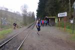 Einen Tag später waren dann die Langstreckenläufer der Gaensefurther Sportbewegung gefordert, denn die 42. Harzquerung stand auf dem Plan. Jens-Uwe Börner hatte für weite 51 Kilometer gemeldet. Petra Becker und Detlef Schäfer standen mit ihm gemeinsam am Start in Wernigerode, waren aber nicht ganz so verrückt und „nur“ auf 25 Kilometer aus. Durch den schlechten Zustand der Wege mussten sich aber alle Teilnehmer auf Umleitungen und damit längere Strecken einstellen. Gleich zu Beginn ging es heftig bergauf und riesige Matschpfützen sorgten für nasse Schuhe. Schlechte Voraussetzungen für eine Langdistanz, begünstigt Feuchtigkeit doch oft eine Blasenbildung. Ein Überholen war schwierig, denn die lange Läuferkette schob sich schleppend die schmalen Steigungen hinauf. Zeit, den Blick schweifen zu lassen, der anstatt auf dichte Wälder oft über weit gerodete Flächen im Horizont verschwand. „Hier war doch vor 6 Jahren noch Wald!“, schüttelte Börner in Erinnerung an seine letzte Harzquerung traurig den Kopf und registrierte stattdessen den Geruch der riesigen Holzstapel frisch geschlagener Bäume am Wegesrand. Aber nicht nur das frustrierte. Auch sein Zeitplan geriet komplett aus den Fugen, denn die Ankunftszeit der Harzbahn, die er sich auf den Unterarm geschrieben hatte, war schon längst verstrichen. Um sie am Kreuzungspunkt fotogarfisch festhalten zu können, hätte er schon fünf Kilometer weiter sein müssen. Der 25-er Kurs mit Becker und Schäfer war bereits abgebogen und in Richtung Ziel unterwegs, als dann auch Sabine Börner ab Benneckenstein die 30 Kilometer lange Wanderstrecke in Angriff nahm. Abenteuerlich führte sie auch durch Bachläufe, Seile halfen an steilen Passagen hinunter oder hinauf und immer wieder galt es Platz zu machen, wenn sich die schnelleren Läufer von hinten laut bemerkbar machten: "Links! Ich komme von rechts!" Auf das Überholen des Gatten wartete sie allerdings vergebens, denn zu allem Unglück verpasste er den richtigen Abzweig. Diesen Irrtum bemerke er erst nach zwei Kilometern, da es keine Markierungen und Streckenposten mehr gab. Bis zum Abzweig nochmal zwei Kilometer zurück und Läufer überholen, die man ja schon mal einkassiert hatte - Börners Laune war verständlicher Weise auf dem Tiefpunkt.