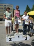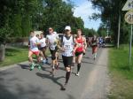 Als anspruchsvoll und für „Fortgeschrittene“ deklariert, sollte die Strecke ihrer Beschreibung durchaus gerecht werden. Bereits nach dem ersten Kilometer stieg die Asphaltstraße merklich an. Doch gerade als das Atmen zu anstrengend werden sollte, sorgte ein schattiger Waldweg wieder für Entspannung. Das Spiel zwischen Licht und Schatten erforderte die ganze Aufmerksamkeit der Läufer. Hatten die Veranstalter den quer liegenden Baum als Extra-Bonbon auf dem Weg drapiert? Wie bei der „stillen Post“ wurde vom Vordermann lauthals an den Verfolger weitergegeben: „Baum!“ Gehüpft, gegrätscht oder draufgetreten, die Barriere sollte für die Läufer kein Hindernis sein. Aus dem Wäldchen führte die Strecke hinaus auf die Felder. Bis zur Streckenteilung brannte die Sonne zusätzlich auf die erhitzten Köpfe. Streckenposten teilten nun die ankommenden Läufer auf: „Die Sieben Kilometer nach links, elf Kilometer nach rechts!“ „Machs gut, arme Bine“, verabschiedete sich Petra Becker von ihrer Vereinskollegin. Zusammen mit Heidi Schwenke vom BSV Eickendorf flitzte Becker nun in Richtung Konradsburg. Die Wahl der kürzeren Streckenlänge sollte sich am Ende gelohnt haben, denn beide Läuferinnen konnten in ihren Altersklassen auf das Siegertreppchen steigen.