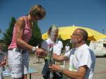 Sylvia Köhn freute sich riesig über den 1. Platz in der W 30, ebenso Jürgen Eisfeld, Triathlet der Gaensefurther Sportbewegung, in der M 70. Tröstende Worte fanden die Vereinskollegen für Börner: „Ach Jens-Uwe, letzter Platz!“ „Na und, dafür hab ich die meisten Fotos!“, grinste er und belohnte sich mit einer ordentlichen Portion Eis.