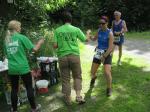 Über 100 Starter, unter ihnen sieben Gaensefurther, begannen den 24,5 Kilometer langen Crosslauf durch die Harzer Wälder am Meisdorfer Schloss. Durch die hohe Luftfeuchtigkeit der nächtlichen Regenfälle liefen sich die ersten Anhöhen zum Selketal-Stieg besonders schwer. Aus der Traum für Jens-Uwe Börner, 51 Minuten nach dem Start, einen Schnappschuss der Selketalbahn am Osterteich zu erhaschen. Der Zug war bereits abgefahren! Schneller unterwegs waren da Triathlet Steffen Schöler mit Sprinterfrau Ina und Bode-Runner Dirk Meier. Vorbei am Ballenstedter Schloss, hatte man sich auf 260 Höhenmeter hochgearbeitet. Während sich Petra Becker bis zur Streckenmitte im hinteren Läuferfeld versteckte, liefen Sylvia Köhn und Sabine Börner über längere Zeit ein gleichstarkes Tempo. Musste Köhn nach den absolvierten Bergpassagen an der Osterhöhe einen Gang runter schalten und verfiel Börner der angenehmen Begleitung eines Quedlinburger Laufkollegen, holte Becker ihre Mitstreiterinnen der Reihe nach ein. Nach 345 erreichten Höhenmetern am Hagentalblick ging es wieder rasant bergab nach Bad Suderode. Am Verpflegungspunkt kippten die Läufer nicht nur möglichst viel Wasser in den Kopf sondern auch über den Kopf. Tropfnass ging es auf die letzten heißen Kilometer, welche den Läufern alles abverlangte. An der Bückemühle brannte die Mittagssonne erbarmungslos. Hier kassierten Becker und Börner dann auch Lutz Klauß, welcher die Damen regungslos ziehen ließ.