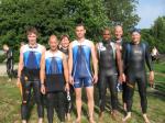 Annett Lampe(w40) und Annegret Wille (w45), die einzigen Damen im Team, schafften es unter die besten zehn Teilnehmerinnen und ließen auch mindestens die Hälfte der männlichen Triathleten hinter sich. In Ihren Altersklassen siegten sie. Beide glänzten mit sehr guten Schwimmzeiten über die 750m, jeweils unter 16 min und Annett überraschte mit einer super Laufzeit von 21:31min über die 5 Kilometer.