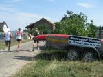 Nachdem in acht Zelten Quartier bezogen wurde, standen der Lauferei, dem Radfahren und natürlich dem grenzenlosen Badespaß im Hohennauener See nichts mehr im Wege. Den ultimativen Höhepunkt des Trainingslagers bildete der 3-Seen-Lauf am Nachmittag des zweiten Tages. Bereits beim Frühstückslauf am Morgen war den Lauffreunden klar: Heute wird es wieder sehr heiß! So gönnten sich die Sportler nach dem reichhaltigen Frühstücksbüfett im nahegelegenen Hotel ein paar faule Stunden am See. Auch der Veranstalter hatte bereits vorgesorgt und den langen Kanten über 25 Kilometer kurzerhand gesperrt. Weiterhin erleichternd kam hinzu, dass der 3-Seen-Lauf ohnehin auf jegliche Zeit- und Altersklassenwertung verzichtet. Mit der Bitte das Lauftempo den Temperaturen anzupassen, erfolgte um 15 Uhr der entgegengesetzte Start über die acht und 21 Kilometer. Während die Kurzstrecke ihre vier Kilometer bis zum Wendepunkt am bewaldeten Seeufer absolvierte, schienen die Laufschuhe auf den ersten vier Kilometern der Langdistanz am heißen Asphalt kleben zu bleiben. Der Verpflegungspunkt bei Kilometer fünf war allerhöchste Eisenbahn. Das Wasser kippte becherweise über die erhitzten Körper. Wem das nicht reichte, Schuhe aus und rein in den See! Weitere heiße fünf Kilometer auf dem Deich folgten, bevor die restlichen elf vorrangig auf angenehm kühleren Waldwegen zu absolvieren waren. Den Radfahrern als ständige Begleiter der Strecke, war sogar das Wechseln auf die Laufstrecke erlaubt. Doch alle Bode-Runner-Läufer hielten in ihrem Element tapfer durch und auch die Fahrrad-„Gäste“ klopften sich am Ende stolz auf die Schultern.