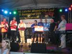 Langsam stieg auch bei den Akteuren des Hauptwettkampfes über die zehn Kilometer der Adrenalinspiegel. Auf der Einlaufrunde die gut gelaunten Zuschauer angesprochen: „Seid ihr nachher auch noch da?“, verschafften sich die Bode-Runners gleich einmal ihre Fanblocks für die fünf zu absolvierenden Stadtrunden. Begleiter und ehemaliger Leichtathlet Dr. Blauwitz gab noch wertvolle Lauftipps, welche natürlich gleich mit ordentlichen Zielzeiten untermalt wurden. Mit einem pünktlichen Startschuss um 19:15 Uhr durch Lehrtes Bürgermeisterin Jutta Voß, setzten sich die 500 Sportler in Bewegung. Auf dem ersten Kilometer sortierte sich das Läuferfeld und langsam fand jeder seinen Rhythmus. Dr. Blauwitz ließ es sich nicht nehmen, die Zwischenzeiten zu kontrollieren, die Bürgermeister und anwesenden Staßfurter Stadträte fieberten an der Strecke mit. Auf der ersten Runde mussten die Fanblocks noch mit Winken auf den Durchlauf hingewiesen werden: „Jetzt!“und los ging das Getöse. Ab Runde zwei warteten die Zuschauer förmlich auf die Staßfurter. Verdutzte Läufer wurden gleich beruhigt: „Die haben wir bezahlt!“ Die Stimmung an der Strecke verursachte Gänsehaut und die Sportler kämpften bis zum Ziel. Ronald Rabenstein errang am Ende einen zweiten Platz von 22 Läufern in der M 55, Sabine Börner landete auf Platz drei von 19 Frauen in ihrer Altersklasse. Nach Ehrungen und Showprogramm ging ein großer Citylauf zu Ende. Satt und zufrieden traten die Gaensefurther kurz vor Mitternacht die lange Heimreise an.