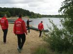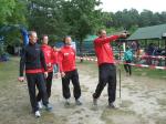 In der Nähe von Stendal, am idyllisch gelegenen Waldbad Wischer, starteten am Wochenende knapp 90 Teilnehmer über die ausgeschriebene olympische Distanz des SV Wasserfreunde Stendal 1923. Unter ihnen auch sechs Mutige der Gaensefurther Sportbewegung. Routiniert liefen die Vorbereitungen ab. Nachdem das Fahrrad mit Helm, Schuhe und Startnummerngürtel neben der Wasserschüssel für die Dreckfüße ihren Platz im Wechselgarten gefunden hatten, erfolgte im 21 Grad warmen Baggersee der Startschuss für die 1,5 Kilometer lange Schwimmstrecke. Im Kampf um die Positionen geriet der stille See mächtig in Wallung, bis sich die einzelnen Schwimmer wie an einer langen Kette eingereiht hatten. Da zwei Seerunden zu absolvieren waren, mussten die letzten fast bangen, von den ersten eingeholt zu werden. Jens-Uwe Börner, einfach nicht als Schwimmer geboren, hatte noch 750 Meter vor sich, als nach gut 22 Minuten der allererste Schwimmer aus dem Wasser hechtete. Starke 27:49 Minuten und damit schnellster Gaensefurther war Ralf Rosenmeier, gefolgt von Steffen Schöler, Torsten Blauwitz und Florian Börner. Die genannten dürften bereits auf der Fahrradstrecke gewesen sein, als auch Ingo Bieganski endlich das nasse Element hinter sich bringen konnte. Und nach knapp 45 Minuten hatte es sogar Jens-Uwe Börner geschafft. Bis zum wartenden Fahrrad mussten ungefähr 100 Meter im weichen Sandstrand zurückgelegt werden, was zusätzlich an den Kräften zehrte. Abkühlung verschaffte dann zunächst der Fahrtwind auf der durchnässten Kluft. Aber die hügelig zu fahrende 43,5 Kilometer lange Radstrecke heizte den Sportlern schnell wieder ein. Während die Ausreißer ziemlich dicht zusammen um jede bessere Position kämpften, versuchten Bieganski und Börner von hinten Plätze gut zu machen. Auch Börner gelang dies, trotz schwerem Stahlrad. Mit den Rädern wieder im Wechselgarten angekommen, sollte wie schon so oft die Laufstrecke die Entscheidungen bringen. In der Gaensefurther Spitze hatte sich Blauwitz kämpferisch nach vorn gearbeitet. Sollte es anfangs garnicht laufen, siegte er am Ende knapp vor Schöler. Prima in Form erwies sich auch Rosenmeier, der nur auf der Laufstrecke letztlich einbrach, den Vorsprung jedoch knapp vor Börner Junior halten konnte. Beide kamen in ihren Altersklassen auf das Podest. Dann folgte Bieganski, welcher durch seine 43-er Laufzeit noch so manchen Sportler überholt hatte. Inzwischen erfolgte bereits der Aufruf, den Wechselgarten für den Jedermann-Triathlon zu räumen. Zu diesem Zeitpunkt kam auch Jens-Uwe Börner endlich ins Ziel. Drei Stunden Fitness lagen hinter ihm. Eine Cola später stellte sich auch bei ihm der zufriedene Gesichtsausdruck ein. Bereits über den gesamten Tag herrschte Anspannung pur bei Jana Bieganski. Denn nun war es endlich soweit, der Start beim Jedermann-Triathlon über 750 Meter Schwimmen, 14,5 Kilometer Fahrrad fahren und fünf Kilometer laufen. Mit ihr stand zum ersten Mal Jana Berger am See, welche ganz relaxt ihr Triathlon Debüt angehen wollte. Beide gaben ihr bestes und bei Bieganski reichte es sogar für den dritten Platz in ihrer Altersklasse. Nach Siegerehrung und Tombola ging ein langer und aufregender Wettkampftag zu Ende. Beste Vorbereitungsarbeit auf den 11. Gaensefurther-Schlossbrunnen-Triathlon!