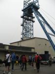 Nur in leichte Laufsachen geschlüpft, hängten die Sportler ihre Kleidung an großen Haken auf. Mit einer langen Kette wurden die Sachen dann unter die Hallendecke gezogen. Wie bei den echten Bergleuten auch, ist die Kleidung nur dort vor Verschmutzung geschützt. Weiterhin ausgerüstet mit Helm und Grubenlampe, eilten die Läufer durch das feuchtkalte Herbstwetter zum Brügman-Schacht. Der Förderkorb ließ nicht lange auf sich warten und schon bald wirbelte die 30 Grad warme Abluft vorbei. Nach drei Minuten Abwärtsfahrt bis auf 680 m Tiefe, eröffnete sich den Teilnehmern ein Erlebnisbergwerk der Superlative. Die musikalische Begrüßung durch die Bergmannskapelle nahmen die noch tauben Ohren nur gedämpft wahr. Aber den Sportlern und gut 150 Zuschauern blieb noch genug Zeit zur Akklimatisierung.